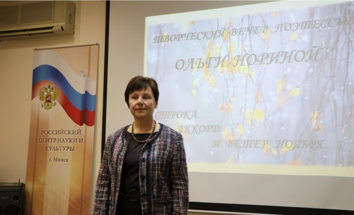 В Российском центре науки и культуры в Минске по инициативе актива культурно-просветительского общественного объединения «Наша Русь» 19 ноября 2019 года состоялся творческий вечер столичной поэтессы Ольги Нориной.